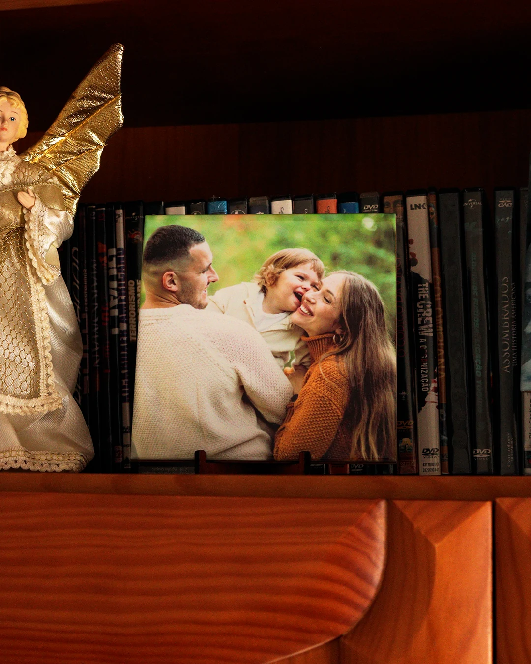 Inclui um suporte preto simples e discreto, ideal para destacar a imagem sem distrair do design. Perfeito para decorar qualquer espaço ou para oferecer como presente especial.
