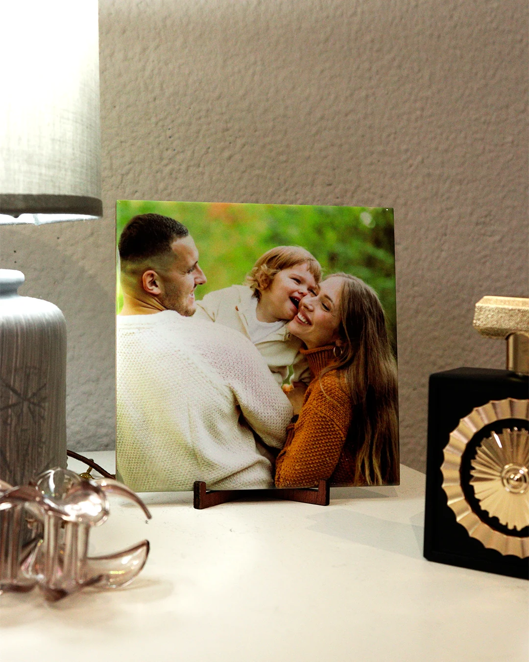 Transforma as tuas memórias numa peça decorativa elegante e intemporal. Este azulejo personalizado é produzido através de sublimação de alta definição, garantindo cores vibrantes, excelente nitidez e grande durabilidade. A imagem fica integrada na superfície do azulejo, não sendo uma simples impressão colada.