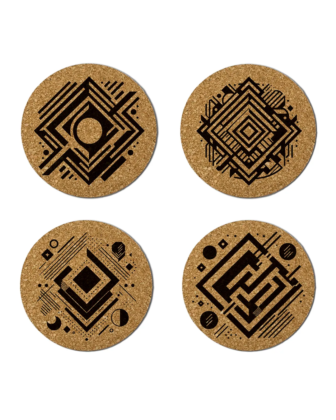 Estas bases de copos geométricas em cortiça natural combinam o charme do artesanal com um design geométrico moderno. Cada base é gravada a laser com padrões geométricos, criando um visual elegante e contemporâneo que se adapta facilmente a diferentes estilos de decoração.