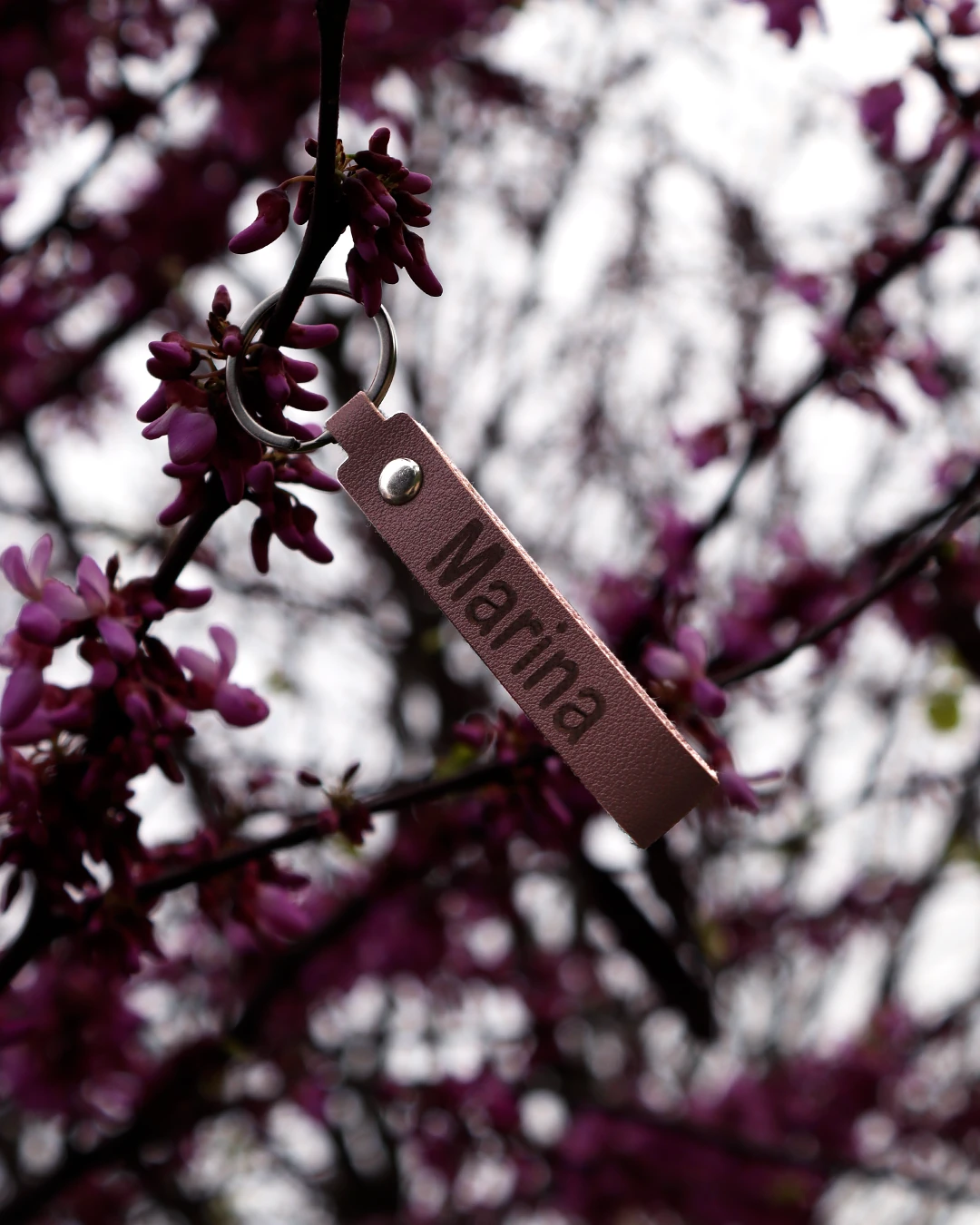 Para quando queres um acessório único e especial, o Porta-Chaves Fita com Nome em castanho é perfeito! Feito em pele sintética resistente, permite gravar o teu nome e uma mensagem personalizada a laser, tornando-o totalmente pessoal e original.