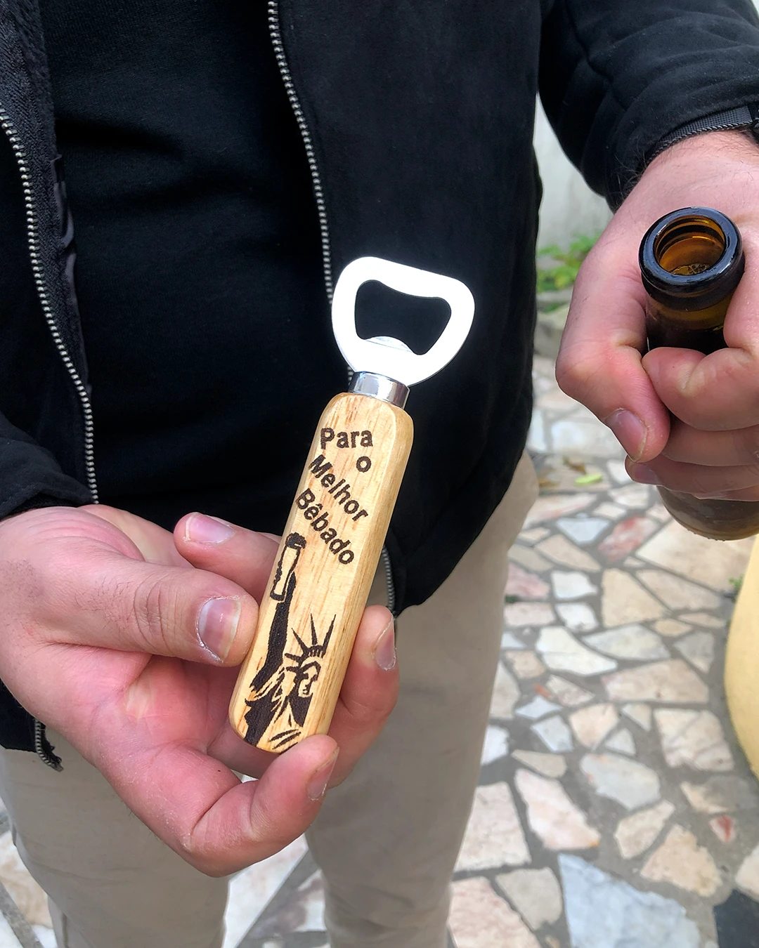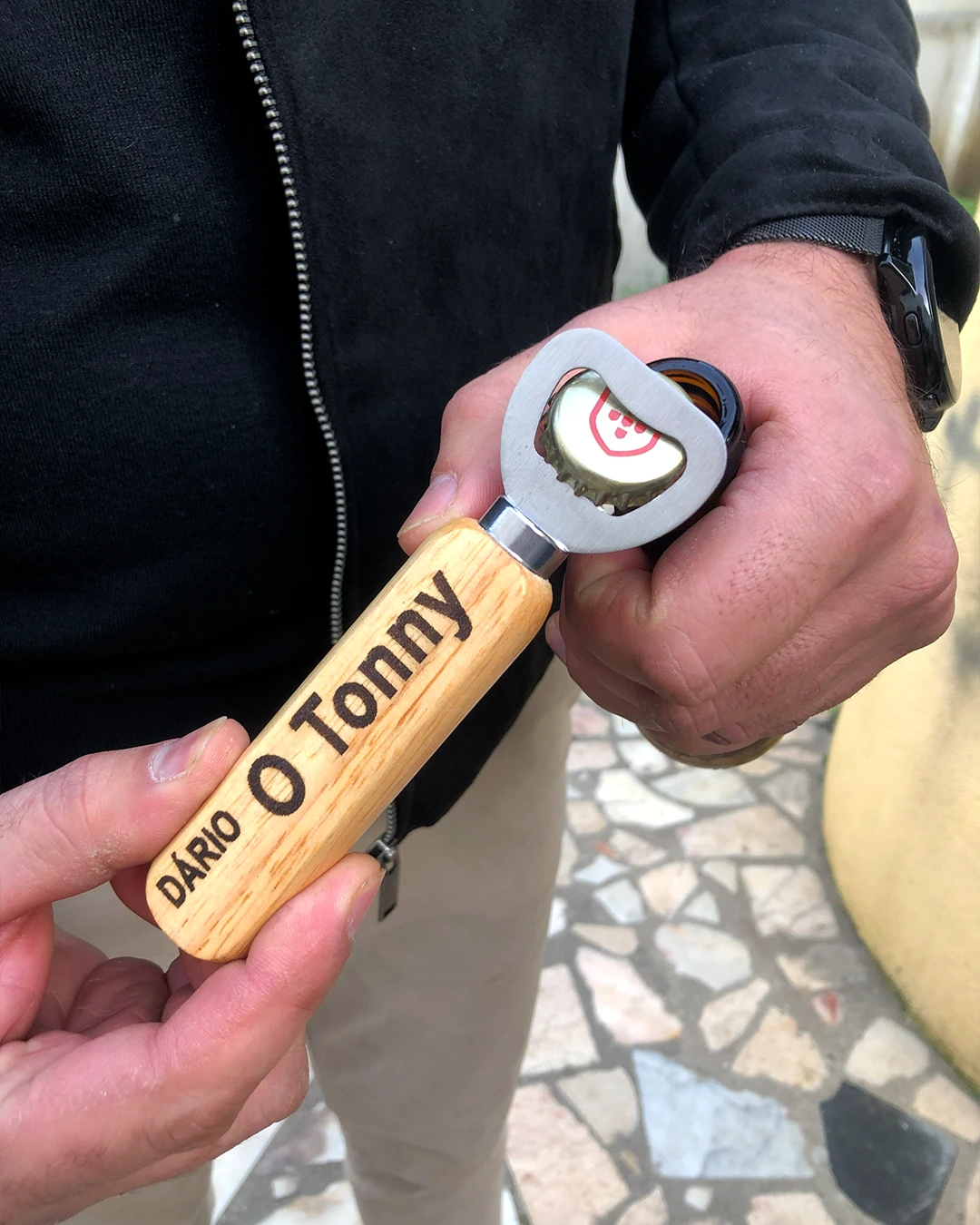 Podes personalizar com um nome e uma alcunha especial, tornando-o totalmente único. Feito em madeira de bambu durável, é resistente e funcional, garantindo que o teu presente se destaque em qualquer festa ou ocasião especial.